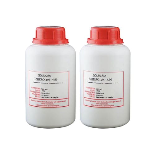 KIT 2 SOLUÇÃO TAMPÃO PH 4,00 MOD. ST-40 500ML DESCRIÇÃO: Solução tampão ph 4,00 mod. st-40 500ml APLICAÇÕES: 1) Mesmo que o medidor de pH não esteja em uso, é ideal realizar ajustes periódicos (ideal a cada 2 dias) com a solução tampão para garantir pleno funcionamento e vida longa ao instrumento. 2) As soluções são garantidas até sua abertura, portanto mesmo que armazenadas fechadas, após abertas, podem sofrer variações. ESPECIFICAÇÕES TÉCNICAS: Solução de calibração para medidores de ph Quantidade: 500ml Valor do ph: ph 04 (Ácido) ACESSÓRIOS FORNECIDOS: 2 - Solução tampão PH ST-40 500ML