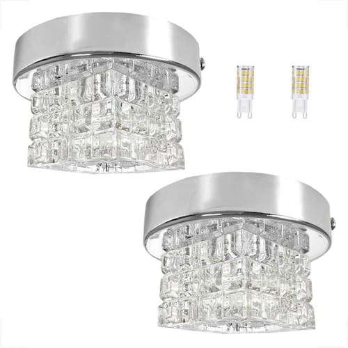 Kit 2 Spot Cristal Quadrado Sobrepor Prata Plafon Bet45 + Led Plafon de sobrepor prateado de cristal k9