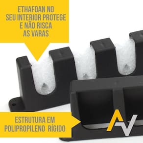 tamanho: aprox. : 34cm x 6cm suporte para um total de 12 varas. Material da estrutura: polipropileno rígido em sua estrutura material do interior: espuma ethafoan