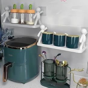 Suporte Plástico Com Adesivo Decoração Para Sala Cozinha Banheiro Prateleira Organizador