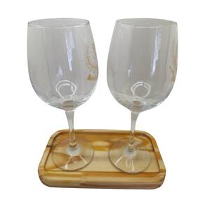 O kit é composto por 2 taças de 490 ml cada e 1 linda bandeja de madeira.