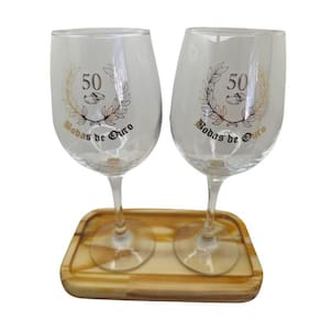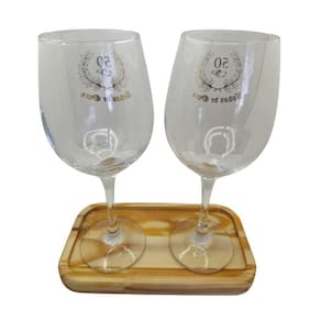Kit 2 Taças Bandeja Bodas Ouro 50 anos Personalizada Vinho Kit 2 com Bandeja Taças Bodas de Ouro 50 anos Casal Cristal Personalizada Vinho 490ml - Nadir Figueiredo - Barone