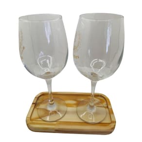 O kit é composto por 2 taças de 490 ml cada e 1 linda bandeja de madeira.