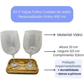 Kit 2 Taças Bandeja Folha Costela Adão Personalizado Vinho Kit 2 Taças com Bandeja Folha Costela de Adão Personalizado Vinho 490ml - Nadir Figueiredo - Barone