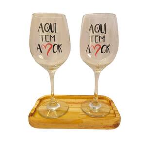 Kit 2 Taças Bandeja Frase Tem Amor Personalizada Vinho 490ml Kit 2 Taças com Bandeja Frase Tem Amor Namorados Casal Personalizada Vinho 490ml - Nadir Figueiredo - Barone