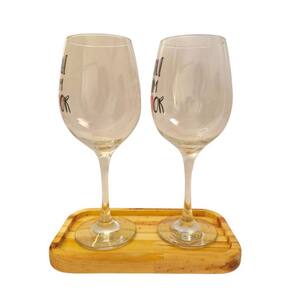 O kit é composto por 2 taças de 490 ml e 1 linda bandeja de madeira.