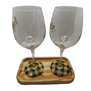 O kit é composto por 2 taças de 490 ml cada e 1 linda bandeja de madeira.