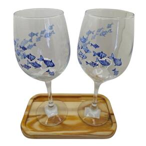 O kit é composto por 2 taças de 490 ml cada e 1 linda bandeja de madeira.
