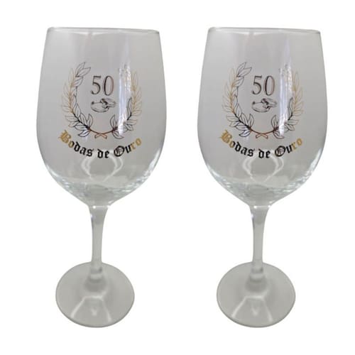 Kit 2 Taças Bodas de Ouro 50 Anos Casal Personalizada Vinho Kit 2 Taças Bodas de Ouro 50 anos Casal Cristal Personalizada Vinho 490ml - Nadir Figueiredo - Barone