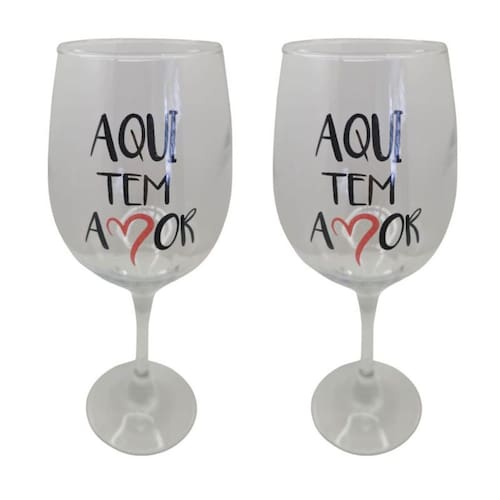 Kit 2 Taças Frase Tem Amor Namorado Personalizada Vinho Kit 2 Taças Frase Tem Amor Namorados Casal Personalizada Vinho 490ml - Nadir Figueiredo - Barone