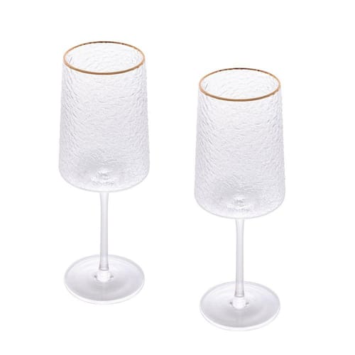 Conjunto de duas taças de cristal ecológico para vinho com fio de ouro petra nas bordas que dão charme e sofisticação.