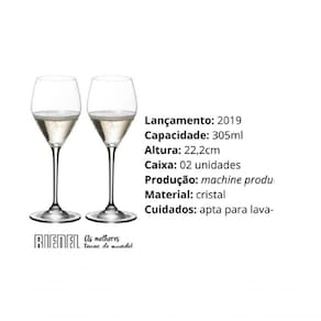 Conteúdo: Conjunto com 2 taças especiais para espumantes encorpados da Linha Riedel Heart to Heart