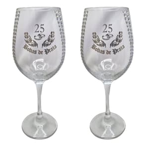 Kit 2 Taças Bodas de Prata 25 anos Casal Cristal Personalizada Vinho 490ml - Nadir Figueiredo - Barone
