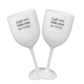 O Kit 2 Taças Vinho Personalizadas Para Live é perfeita para te acompanhar em todas as lives, é resistente e possui um design diferenciado Ideal para personalizar e servir vinho, frisante, água e drinks em geral. Características: Material: Poliestireno Acrílico PS Altura: 20,5 cm Diâmetro: 9,5 cm Capacidade: 400 ml Cor: Branco Ficha técnica - Cor: Branco - Quantidade: 2 peças - Tamanho: Único Ean: 7897581912432