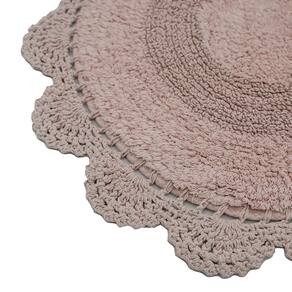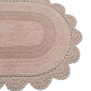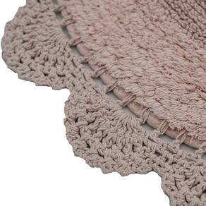 Kit De Tapete Crochê Dupla Face Oval Para Banheiro 60x90cm Rosê -