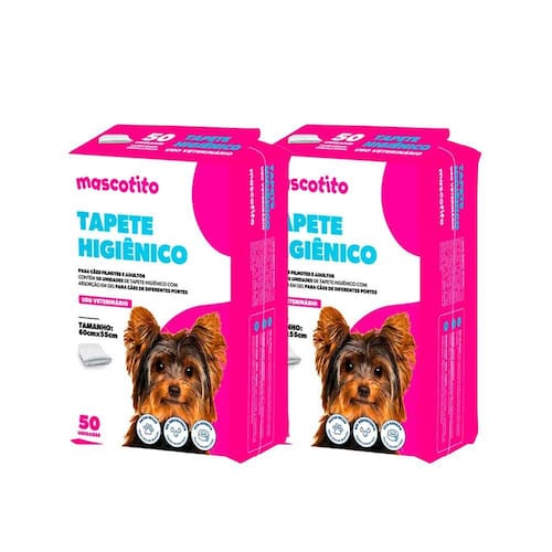 Kit 2 Tapetes Higiênico Mascotito 60x55cm C/50 Unidades - Indicado para cães; - Indicado para raças pequenas; - Alta tecnologia; - Tecnologia com extra gel; - Máxima proteção contra vazamentos; - Tamanho 60x55cm. O Tapete Higiênico Mascotito é indicado para cães de filhotes e adultos de pequeno porte. Ele possui uma alta tecnologia com extra gel, garantindo uma máxima proteção contra vazamentos. O tapete pode ser utilizado tanto em casa como em apartamentos. Desenvolvido com matérias de qualidade, resultando em um produto discreto, de fácil armazenamento proporcionando absorção na medida certa. Sua fabricação conta com 5 camadas de proteção e canais de absorção que garantem uma maior velocidade na absorção do xixi. Além disso conta com 4 fitas reposicionáveis. Modo de usar Tire o tapete da embalagem. Desdobre-o. Retire os papéis aplicados nos 4 cantos da parte inferior do tapete e fixe-o no chão com o lado dos adesivos voltados para baixo. Medidas aproximdas 60cm x 55cm.