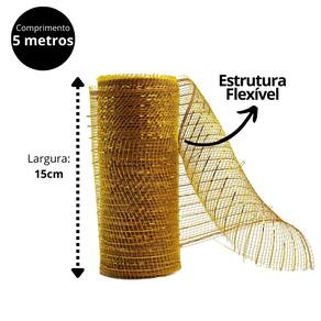 Kit 2 Telas Decorativa Fita Malha Tule Dourado Natal 15cmx5m