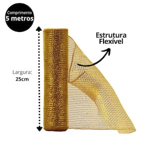Kit 2 Telas Decorativa Fita Malha Tule Dourado Natal 25cmx5m