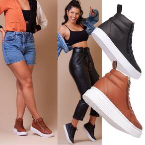 KIT COM DOIS PARES UM PAR PRETO + UM PAR CARAMELO. Bota Feminina Preta Estilo Academia Com Solado De Borracha Bota Caramelo Plataforma.Descubra o Charme do Conforto para seus treinos ou passeio com nosso coturno femininoCaracterísticas Principais:Cabedal: Sintético Forro: Tecido AntibacterianoPalmilha: Confort Eva 4mmSola: Borracha AntiderrapanteAltura Da Sola baixa: 3 Centrimetros (PRETA).Altura Da Sola plataforma : 5 Centrimetros (CARAMELO).Metais: AntioxidanteAjuste: Cadarço Fios De Algodão E Zíper ReforçadoPeso: 0.800g CADA PAR.Atenção na hora de escolher seu tamanho, o Tênis possui FORMA NORMAL, pedir o número que já está acostumado a usar, temos aqui a abaixo uma tabela aproximada de cm da palmilha para usarem como referência.TAMANHO DE PALMILHA33 - 22.9 cm 34 - 23.2 cm 35 - 24.0 cm36 - 24.5 cm37 - 25.0 cm38 - 26.0 cm39 - 27.0 cm40 - 27.5 cmNão perca a chance de adicionar um toque de elegância e conforto ao seu guarda-roupa. Clique em "Comprar Agora" e experimente a combinação perfeita de estilo e comodidade com nossos Coturnos Femininos. Seu próximo par de sapatos favorito está a apenas um clique de distância!