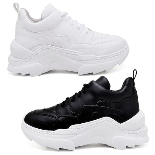 Sneaker é um conceito maximalista de moda, deu para entender né? Oposição ao minimalismo, faz jus ao quanto mais melhor! Confeccionado em material tecnológico conta com forro em material têxtil e palmilha em EVA. Seu solado elevado de 6,5cm emborradado antiderrapante traz toda segurança ao caminhar.