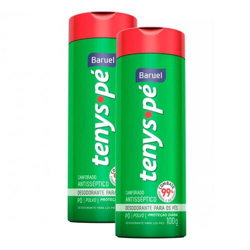 TENYS PÉ BARUEL CANFORADO TALCO Pó. Desodorante para os pés com ação antisséptica que combate 99% de fungos e bactérias, mantendo-os sempre secos e protegidos. A melhor opção para quem vive intensamente e quer desfrutar dos benefícios da Cânfora para relaxar e proporcionar alívio aos pés. Pode ser aplicado nos pés e/ou nos calçados. Combate 99% de Fungos e Bactérias. Antisséptico. Controla a transpiração. Elimina o mau odor. Modo de usar: Aplique diariamente nos pés. Pode ser aplicado também dentro do tênis ou calçado como proteção auxiliar.
