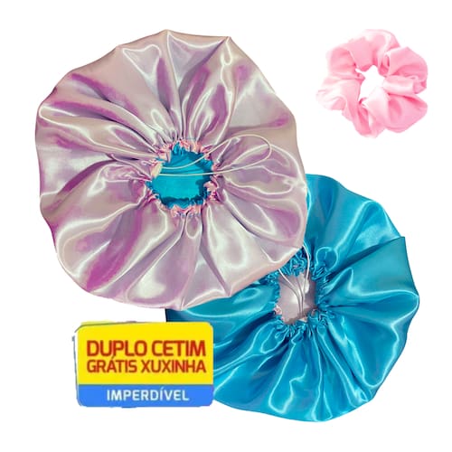 * Itens Inclusos: 2 Toucas de cetim Ajustável dupla face e 2 Xuxinhas
