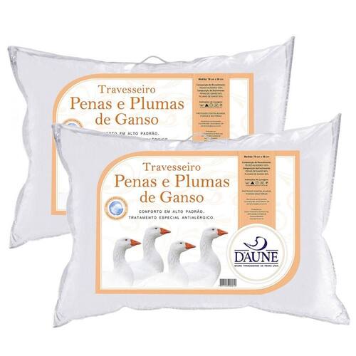 O Travesseiro Daune possui 80% de sua composição em penas de ganso, e 20% de plumas, agrega a maciez às diversas vantagens do travesseiro é seu conforto inigualável, que não absorve o calor do corpo, mantendo a temperatura sempre agradável.