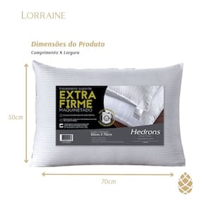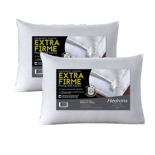DescriçãoKit 2 Travesseiros Hedrons Suporte Extra FirmeAcreditamos que uma noite de sono reparador é a melhor terapia para se viver bem. Para proporcionar bons sonhos, a Hedrons desenvolveu o travesseiro Suporte Extra firme maquinetado, estudado cuidadosamente para oferecer o nível de suporte ideal para o seu biotipo e oferecer o máximo conforto para seu sono. O travesseiro Suporte Extra firme maquinetado toque de seda 300 fios possui fibras leves, macias e confortáveis em nível de suporte firme, ideal para a correta postura para quem dorme de lado.    • TOQUE DE SEDA 300 FIOS; Exclusiva capa em tecido maquinetado com toque de seda de 300 fios  • FIBRAS LEVES & MACIAS; Maior conforto e maciez em nível de suporte firme.  • LAVÁVEL NA MÁQUINA; lave e seque integralmente na máquina. ======================================================================= FICHA TÉCNICA: • Tamanho: 50cm x 70cm x 17cm• Gramatura: 800g/m2• Capa: Maquinetada 100% Poliéster• Enchimento: 100% Fibra de Poliéster Siliconizada • Anti Àcaro I Hipoalergênico• Toque De Seda 300 Fios• Fibras Leves & Macias• Lavável em Máquina • Marca: Hedrons• Suporte: Extra Firme (Firme )• Contém:02 Travesseiros Maquinetado Extra Firme 50x70 cm Branco ======================================================================= RECOMENDAÇÕES DE USO: * Pode ser lavado em máquina, processo normal, tendo como temperatura máxima 40ºC. * Lave e seque integralmente na maquina.* Nunca utilize alvejante (cloro ou água sanitária), durante o processo de lavagem.* Evitar amaciante e lavar com cores similares. * Não passar a ferro. ( Não Amassa ) * Pode ser lavado a seco.* Pode ser secado em secadoras de Tambor, com temperatura máxima de exaustão de 40ºC. =======================================================================