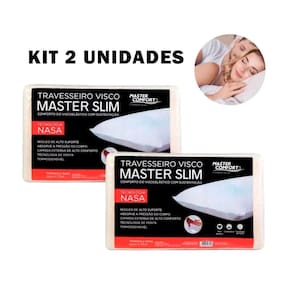 Kit 2 Travesseiros Ortopédico Viscoelástico Macio O Travesseiro Master Viscoelástico possui uma tecnologia desenvolvida pela Nasa e é ideal para quem busca conforto e qualidade. Revestido com 100% de poliéster e espuma de poliuretano. Deixando o momento de dormir tranquilo e revigorante, levando bem-estar para suas noites de sono.