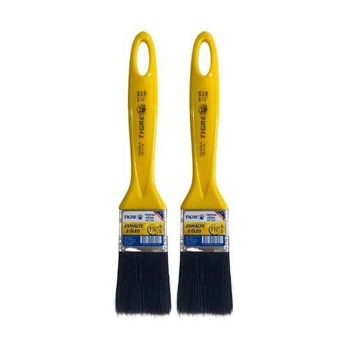 Informações técnicas: Tamanho: 1.1/2 38,1mm Cor: Amarelo Materiais: - Cabo: Plástico - Cerdas: Sintético Superfícies aptas: Paredes de alvenaria, madeira, gesso e drywall, metal e tetos Referência: 519 Indicado para: Tinta esmalte e óleo Cerdas macias