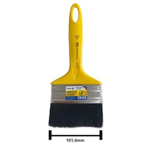 Informações técnicas: Tamanho: 4 101,6mm Cor: Amarelo Materiais: - Cabo: Plástico - Cerdas: Sintético Superfícies aptas: Paredes de alvenaria, madeira, gesso e drywall, metal e tetos Referência: 519 Indicado para: Tinta esmalte e óleo Cerdas macias