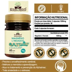 Kit 2 un - magnesio l treonato 600mg 60 caps folha & raizes Kit 2 un - magnesio l treonato 600mg 60 caps folha & raizes - Cada pote rende 30 doses -
