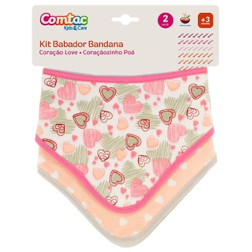 Kit 2 Uni. Babador Bandana Triangular Corações - Comtac Kids Com o Kit Babador Bandana da Comtac Kids, as mamães podem criar vários looks para os pequenos e ainda proteger as roupinhas dos bebês. Características: - Lavável - Fecho com tiras aderentes - Proteção e conforto para o bebê - Tecido estampado em algodão e verso atoalhado - Duas camadas de tecidos para proteger a roupinha contra a sujeira - Design e cores divertidas que deixam seu bebê ainda mais estiloso Cuidados: - Lavagem a temperatura máxima de 30° - Não deixe de molho - Não alvejar - Não usar máquina secadora - Não limpar a seco - Não deixar secar no sol - Não passar Medidas da Bandana Aberta: Altura: 40 cm Largura: 18 cm Medidas da Embalagem: Peso: 80 g Altura: 16 cm Largura: 30 cm Adaptávelimento: 26 cm
