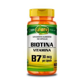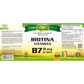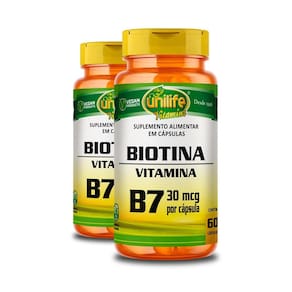 O que é a Vitamina B7 Biotina da Unilife A vitamina B7 Biotina da Unilife faz parte do complexo de Vitamina B, todas vitaminas do complexo B não são produzidas pelo corpo, ou seja precisamos adquirir ela por dietas, entretanto a Vitamina B7 está presente na maioria dos alimentos, mas ela é umas das mais ausentes em todos os organismo, isso acontece devido ela ser muito frágil, e no seu processamento pode ser destruída com muita facilidade e assim perdemos todos seus nutrientes, o que nos resta é suplementar a Vitamina B7 Biotina para obter a quantidade exata sem nenhuma preocupação, pois a carência de B7 pode afetar diretamente o sistema nervoso, coração, e a função digestiva. Como utilizar a vitamina Biotina B7 da Unilife A fabricante Unilife recomenda a utilização de 1 cápsula diária após a principal refeição do dia, deve-se consumir juntamente com líquidos para melhor absorção pelo organismo. A equipe da Edin adverte que qualquer alteração dessa dosagem deve ser feito com um acompanhamento nutricional adequado. Marca: Não Informado Ean: 7908609507414