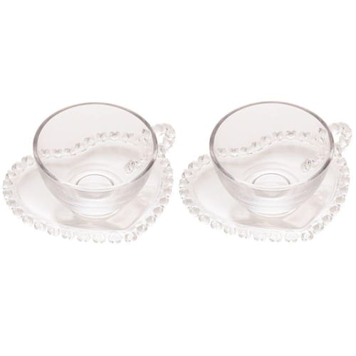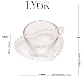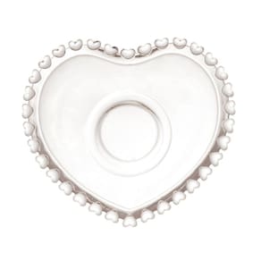 Xícara de cristal e pires em formato de coração, extremamente delicada e elegante.