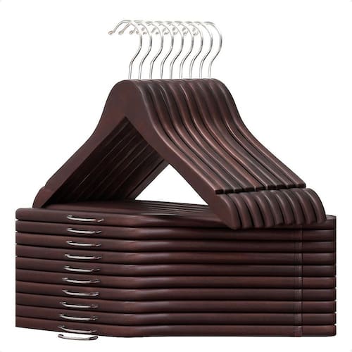 Kit 20 Cabide de Madeira para Organização de Roupas Características Gerais do Produto: Benefícios do produto: Durabilidade, elegância, funcionalidade. Dimensões AxLxP CM : 22,5 X 45 Produzido em: Aço e Madeira Cor acabamento: Marrom : 90 dias junto ao fabricante Acompanha o produto: 20 Cabide : 90 dias Marca: Não Informado