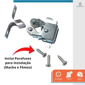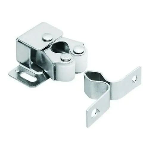 • Corpo em aço carbono zincado com roldanas de plástico, parafuso acompanha. • Possui duas partes ("macho" e "fêmea") para serem instaladas em cada lado do móvel • Embalagem: 2 Saco plástico com testeira com 10 conjuntos