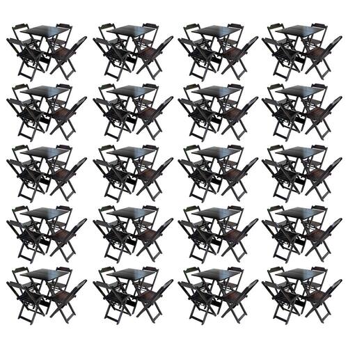 Kit 20 Jogos De Mesa Com 4 Cadeiras De Madeira Dobravel 60x60 Ideal Para Bar E Restaurante - Tabaco é ideal para bares, restaurantes, estabelecimentos, áreas de lazer e tambem para sua casa. Feito em madeira maciça, tornando resistentes e duráveis. Seu design permite que seja encaixado em qualquer ambiente, trazendo um toque a mais para seu estabelecimento. Além de sua durabilidade, o que lhe trará conforto para servir seus clientes. Por ser dobrável torna-se mais fácil guardar, manusear e limpar o produto. Atenção: EVITE USAR PRODUTOS ABRASIVOS E QUíMICOS PARA LIMPEZA DO PRODUTO, aconselha-se o uso de pano umedecido para melhor conservação; mantenha o produto fora de chuva e sol constantes MESA Cor: Tabaco Modelo: Dobravel Dimensões: Altura 76cm | Largura 70cm | Profundidade 70cm CADEIRA Cor: Tabaco Modelo: Dobravel Dimensões: Altura 80cm | Largura 45cm | Profundidade 42cm