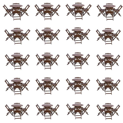 Kit 20 Jogos De Mesa Dobravel Com 4 Cadeiras Tampo Redondo 70x70 Imbuia