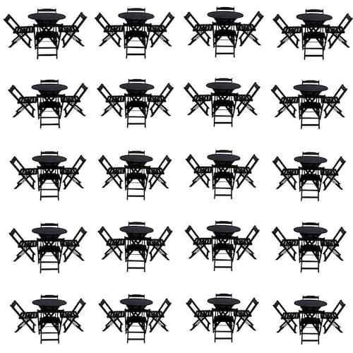 Kit 20 Jogos De Mesa Dobravel Com 4 Cadeiras Tampo Redondo 70x70 Preto é ideal para bares, restaurantes, estabelecimentos, áreas de lazer e tambem para sua casa. Feito em madeira maciça, tornando resistentes e duráveis. Seu design permite que seja encaixado em qualquer ambiente, trazendo um toque a mais para seu estabelecimento. Além de sua durabilidade, o que lhe trará conforto para servir seus clientes. Por ser dobrável torna-se mais fácil guardar, manusear e limpar o produto. Atenção: EVITE USAR PRODUTOS ABRASIVOS E QUíMICOS PARA LIMPEZA DO PRODUTO, aconselha-se o uso de pano umedecido para melhor conservação; mantenha o produto fora de chuva e sol constantes MESA Cor: Preto Modelo: Dobravel Dimensões: Altura 75cm | Largura 70cm | Profundidade 70cm CADEIRA Cor: Preto Modelo: Dobravel Dimensões: Altura 80cm | Largura 45cm | Profundidade 42cm