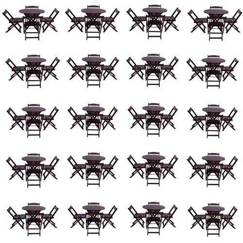 Kit 20 Jogos De Mesa Dobravel Com 4 Cadeiras Tampo Redondo 70x70 Tabaco é ideal para bares, restaurantes, estabelecimentos, áreas de lazer e tambem para sua casa. Feito em madeira maciça, tornando resistentes e duráveis. Seu design permite que seja encaixado em qualquer ambiente, trazendo um toque a mais para seu estabelecimento. Além de sua durabilidade, o que lhe trará conforto para servir seus clientes. Por ser dobrável torna-se mais fácil guardar, manusear e limpar o produto. Atenção: EVITE USAR PRODUTOS ABRASIVOS E QUíMICOS PARA LIMPEZA DO PRODUTO, aconselha-se o uso de pano umedecido para melhor conservação; mantenha o produto fora de chuva e sol constantes