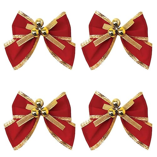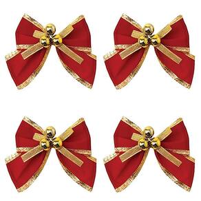 5 Kit Com 4 Laços Decorativo Vermelho E Dourado 10cm;