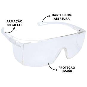 Os óculos de proteção sky combinam estilo e segurança. Sua armação isenta de partes metálicas possibilita o uso em trabalhos com eletricidade. Suas hastes tipo espátula com abertura na ponta permitem a colocação de cordão. Oferecem proteção: UV400 que filtram 99,9% dos raios UVA/UVB até 380 nm, alto impacto e lateral.