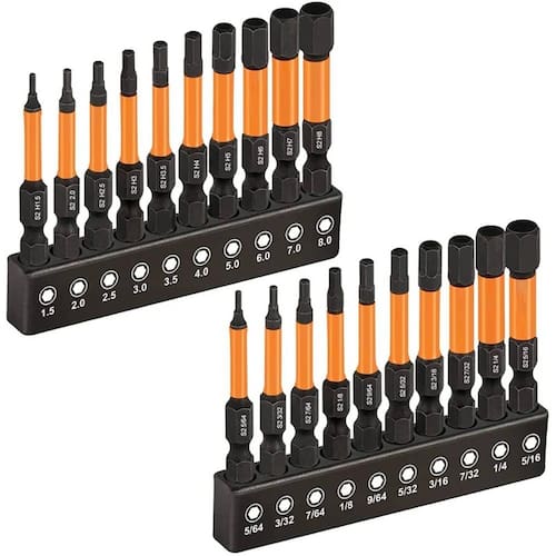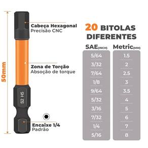 Kit 20 pontas bits allen de impacto com zona de torção magnetizado hexagonal s2 profissional Kit bits de impacto profissional - potência, precisão e durabilidade em cada detalhe Você já quebrou um bit na hora h Chega de se frustrar com bits frágeis que espanam ou quebram no meio do serviço este kit de bits de impacto magnetizados foi projetado para e pesado, com zona de torção que absorve o impacto e evita que a peça quebre. Um investimento que dura 10x mais que kits convencionais. O que você recebe: - 10 bits hexagonais allen métricos: 1,5mm 2mm 2,5mm 3mm 3,5mm 4mm 5mm 6mm 7mm 8mm - 10 bits hexagonais allen sae-5/64 polegadas: 3/32 7/64 1/8 9/64 5/32 3/16 7/32 1/4 5/16 - comprimento: 50mm 2 polegadas - material: aço s2 tratado termicamente - magnetizados: fixação firme dos parafusos Por que esse kit é diferente - bits com zona de torção que absorve o impacto - não quebra fácil - magnetizados para não cair o parafuso no meio do uso - material s2 de alta resistência - alta precisão cnc para encaixe firme e perfeito - compatível com parafusadeiras e furadeiras de impacto Ideal para: - instalações elétricas - manutenção automotiva - marcenaria e móveis planejados - trabalhos industriais e domésticos - profissionais exigentes e hobbystas Pare de comprar kit novo a cada mês Esse é um daqueles investimentos inteligentes: você compra uma vez e esquece Mais torque, mais durabilidade e menos tempo perdido com bits fracos ou frouxos. 1. É compatível com todas as parafusadeiras e furadeiras Sim o encaixe é padrão 1/4, ideal para qualquer ferramenta com suporte hexagonal. 2. Os bits são realmente magnetizados Sim todos os bits têm ponta magnética para segurar parafusos com firmeza. 3. É resistente para uso em impacto Sim são bits desenvolvidos especificamente para impacto, com tratamento térmico e zona de torção. 4. Tem medidas em milímetros e polegadas Sim o kit vem com medidas duplas: 10 em milímetros 1,5 a 8mm e 10 em polegadas 5/64 a 5/16 . 5. Os bits têm mesmo mais durabilidade Sim por serem fabricados em aço s2 e com estrutura para impacto, duram até 10x mais que kits convencionais. Marca: Não Informado