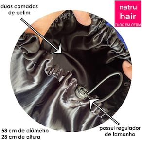 A touca de cetim possui a função de diminuir o atrito entre os fios e o travesseiro, reduzindo o frizz, e previne de quebra em todo tipo de cabelo (crespos, cacheados, ondulados e lisos).