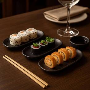 Apresente um toque de sofisticação e autenticidade ao seu restaurante japonês, buffet ou outros estabelecimentos comerciais, com o kit com 20 travessas para sushi da Porto Brasil. Produzidas em cerâmica de alta qualidade, essas peças medem 16,5x8cm e apresentam um elegante acabamento preto fosco no estilo orgânico, conferindo modernidade e requinte à apresentação dos pratos. Ideais para servir sushis, sashimis e entradas orientais, as travessas rasas valorizam cada detalhe da gastronomia japonesa com um design contemporâneo e funcional. Uma escolha perfeita para estabelecimentos que buscam unir estética, durabilidade e praticidade no serviço.