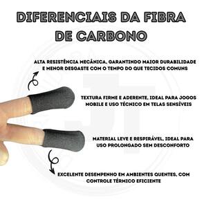 Kit com 20 luvas de dedo modelo dedal em fibra de carbono condutiva. Antiderrapante, resistente ao suor, elástico e ajustável. Ideal para jogos mobile e uso técnico em telas sensíveis.