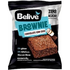 Kit com 20un Brownie Chocolate Coco Zero BELIVE s/ Glúten 40g