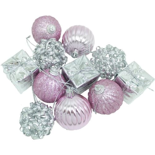 2 Kit Com 11 Pingentes Rosa E Prata De 5cm Para Árvore De Natal;