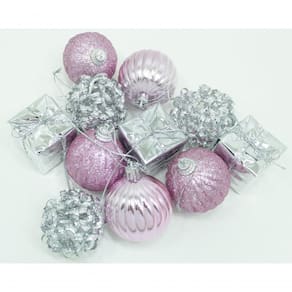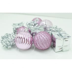 Transforme a sua árvore de Natal em um verdadeiro espetáculo de magia e beleza com nosso exclusivo Kit de Pingentes de Natal! Feitos com materiais de alta qualidade, Acabamento brilhante Rosa e Prata, ;11 pingentes artesanais com designs únicos